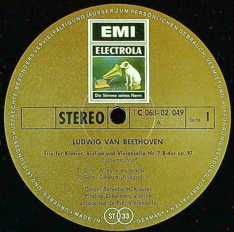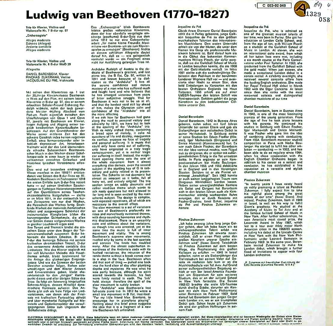 商品コード:1329-058[ELECTROLA] D.バレンボイム(pf) J.デュ・プレ(vc) P.ズーカーマン(vn) / ベートーヴェン:Pfトリオ7番「大公」
