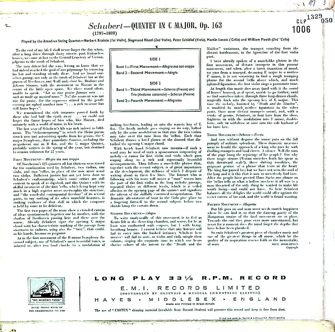 商品コード:1329-050[HMV] アマデウスQt. W.プリース(va) / シューベルト:弦楽五重奏曲