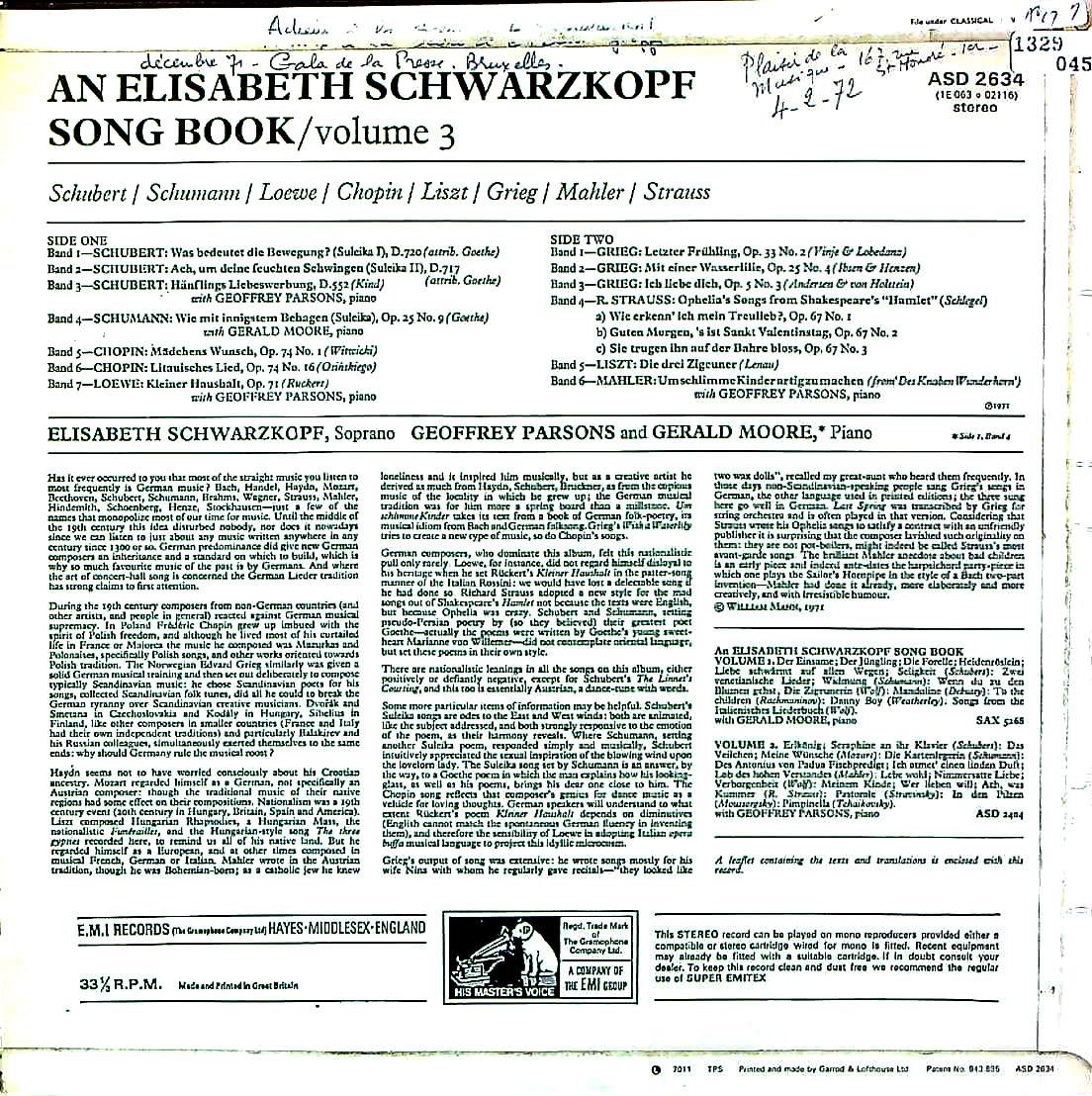 商品コード:1329-045[HMV] E.シュヴァルツコップ(s)/ SONG BOOK -3(全13曲)/シューベルト, シューマン, レーヴェ 他