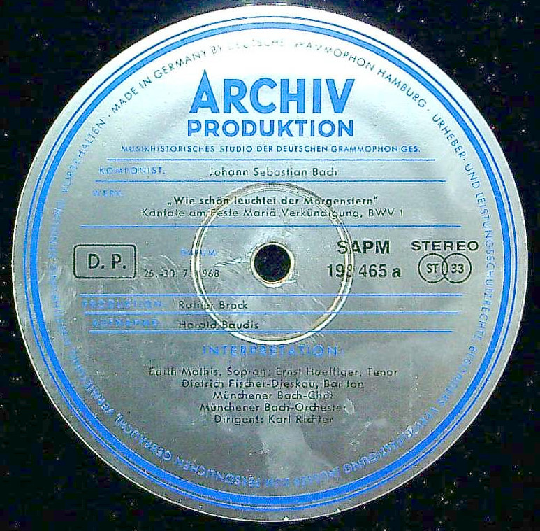 商品コード:1329-009b[ARCHIV] K.リヒター指揮 D.フィッシャー・ディースカウ(br) E.マティス(s) 他/ バッハ:カンタータ1, 4番