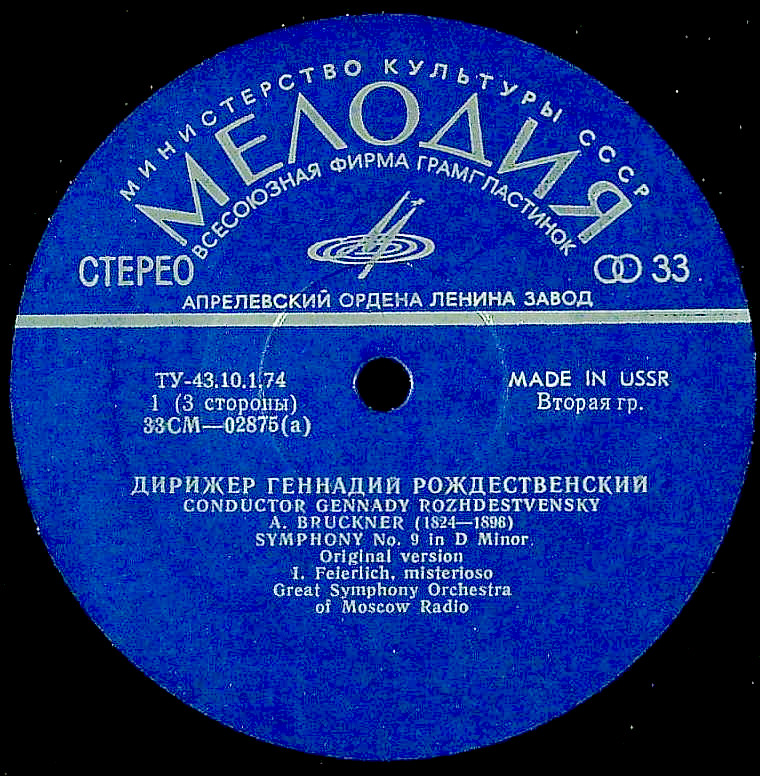 商品コード:1330-035[MELODIYA] G.ロジェストヴェンスキー指揮/ ブルックナー:交響曲 9番(原典版), バッハ:コラール前奏曲(13曲)