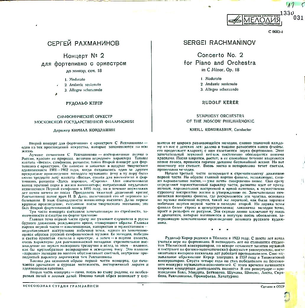 商品コード:1330-031p[MELODIYA] R.ケレール(pf)/ ラフマニノフ:Pf協奏曲2番