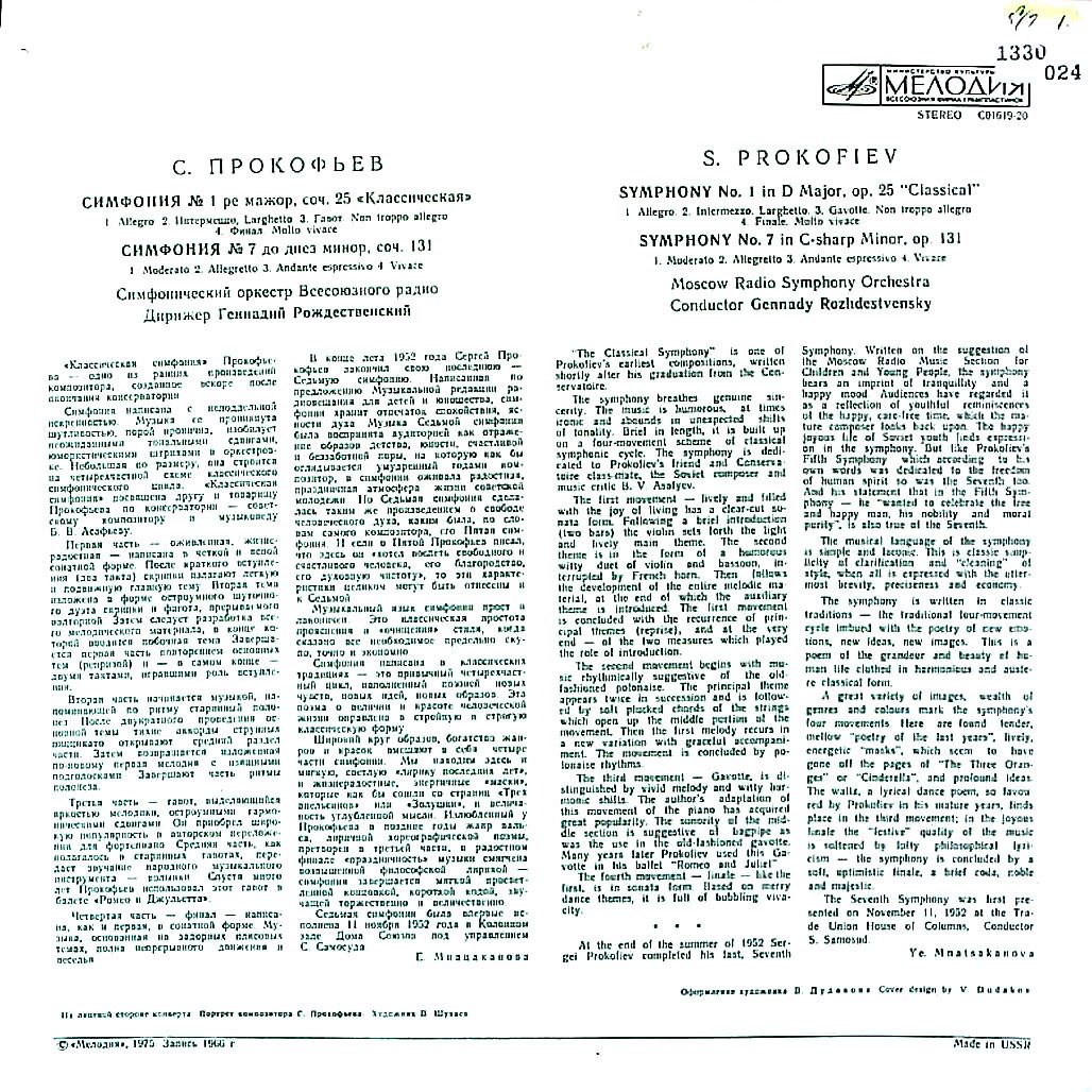 商品コード:1330-024n[MELODIYA] G.ロジェストヴェンスキー指揮/ プロコフィエフ:交響曲1番「古典的」, 7番「青春」