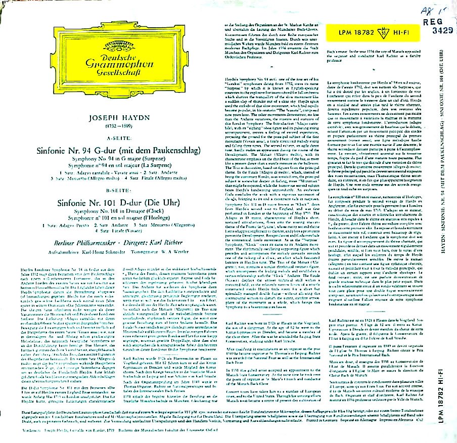 商品コード:REG-3429[独DGG] K.リヒター指揮/ ハイドン:交響曲94番「驚愕」, 101番「時計」