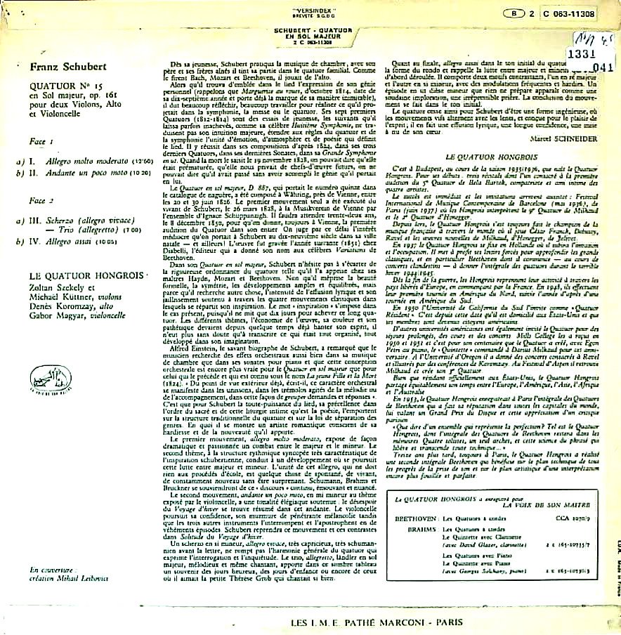 商品コード:1331-041[VSM] ハンガリーQt./ シューベルト:弦楽四重奏曲15番
