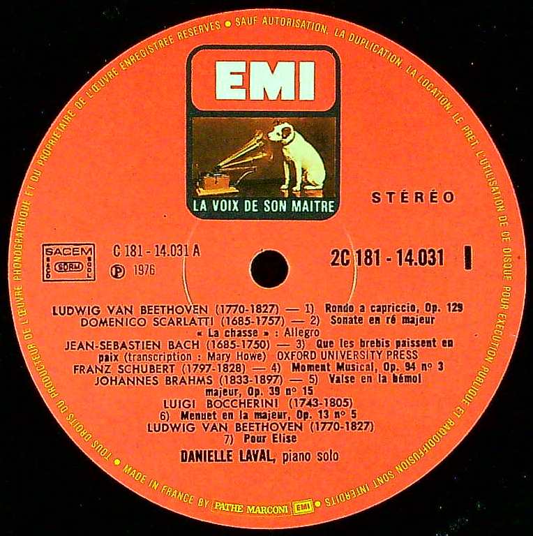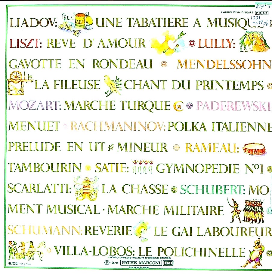 商品詳細:モーツァルトのPfソナタの録音が素晴らしかったD.ラヴァルが入れた小品集。'70年代の録音だが、数ある小品集の中でも出色の出来だと思う。2枚で34曲を上手く配置し、長い曲でも6分半という本当の小品集で、リサイタル盤とは発想が異なる。全25人の作曲家の写真付でPf曲のカタログとしても役立つ。近年彼女の良さが序々に浸透してきたがまだ充分とは言えない。'70年代では特別に優れた女性ピアニスト。自信を持って推薦するPf小品集。カラー切手オリジナルは少ない。1970年代の傑作ピアノLP!100%絶対に損のない2枚組!Danielle Laval (ダニエル・ラヴァル)はフランスの女性ピアニスト。3歳よりピアノを始め、5、6歳より本格的にピアノを学び始める。12歳のときエコールノルマル音楽院に入学し、クロード・デルヴァンクール、リュセット・デカーヴ、ジーン・バタラに師事。更にパリ国立高等音楽・舞踊学校に入学し、ピアノの研鑽を積む。ピエール・デルヴォー、アルミン・ジョルダン、アレクサンダー・ラザレフ、ローレンス・フォスター、アラン・ロンバール、パスカル・ヴェロなどの偉大な指揮者と共演を行った。ニーノ・ロータ(ピアノ協奏曲)、ミシェル・ルグランなどの近代作品の録音もある。ダニエル・ラヴァルは、2011年9月にブカレストで開催されたジョージ・エネスク・ピアノ・コンクールの審査委員長に任命された。競争の厳しいフランスの楽壇に於いてこれだけ多くの録音をEMI系のメジャーに残すラヴァルだが、個人情報はあまりに少ないのが実情。実際に録音を聴いて何かを感じていただきたい。これはラヴァルの実力を知っていただくにはまたとない小品集。このような小品にピアニストの本質が表れる。