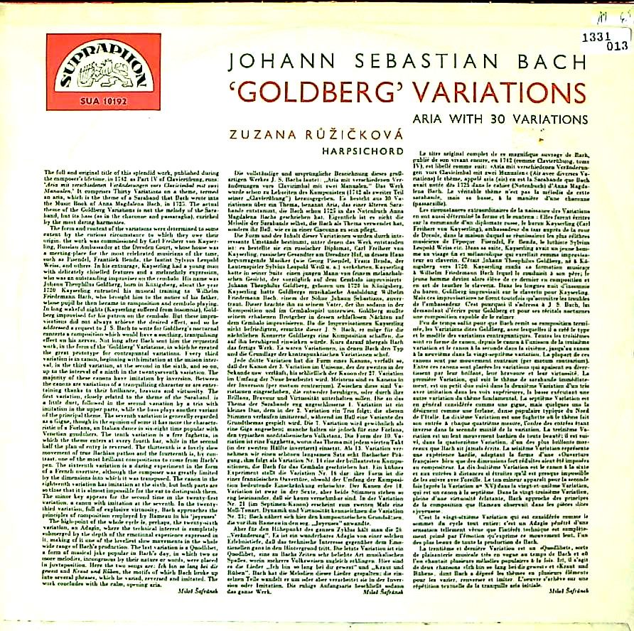 商品コード:1331-013n[SUPRAPHON] Z.ルージチコヴァー(cemb) / バッハ:ゴルトベルク変奏曲B.988