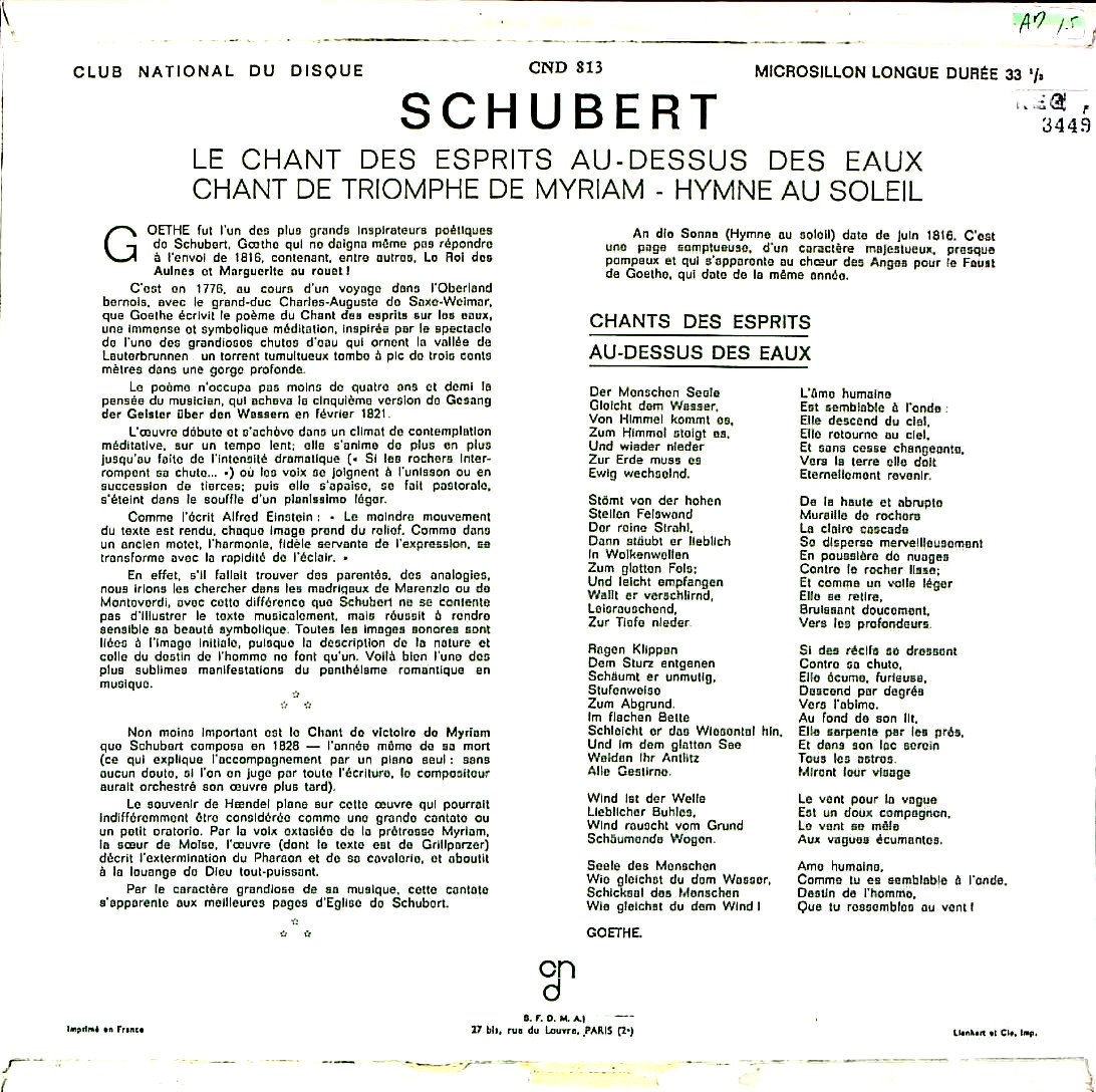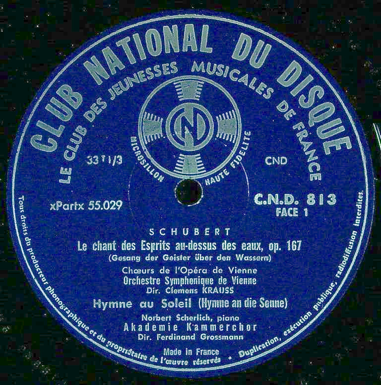 商品コード:REG-3449p[仏Club National de Disques] C.クラウス,F.グロスマン指揮 他 / シューベルト:水の上の精霊の歌, ミリアムの勝利の歌, 太陽に寄す