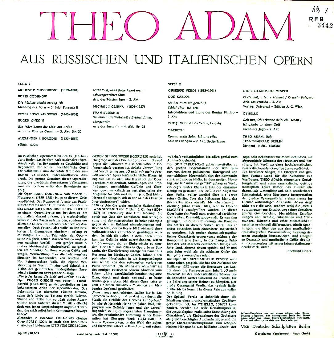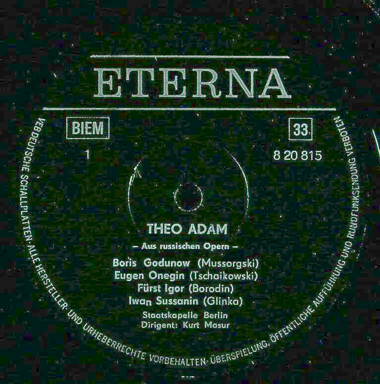 商品コード:REG-3442[東独ETERNA] T.アダム(br)/ ロシア・イタリアオペラ・アリア集/ボリス・ゴドゥノフ, エフゲニ・オネーギン 他