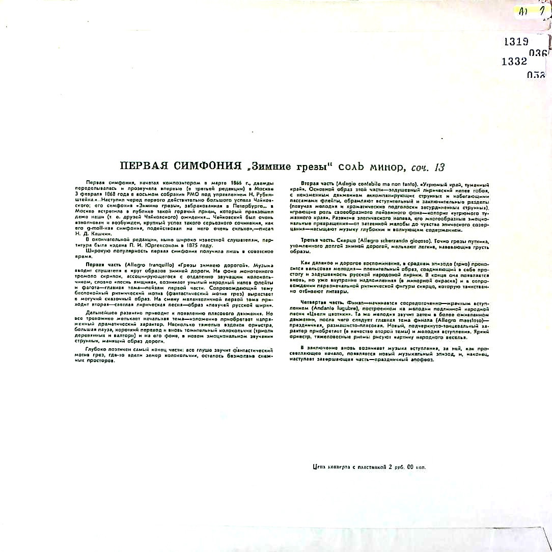 商品コード:1332-058n[MELODIYA] K.イワノフ指揮/ チャイコフスキー:交響曲1番「冬の日の夢想」