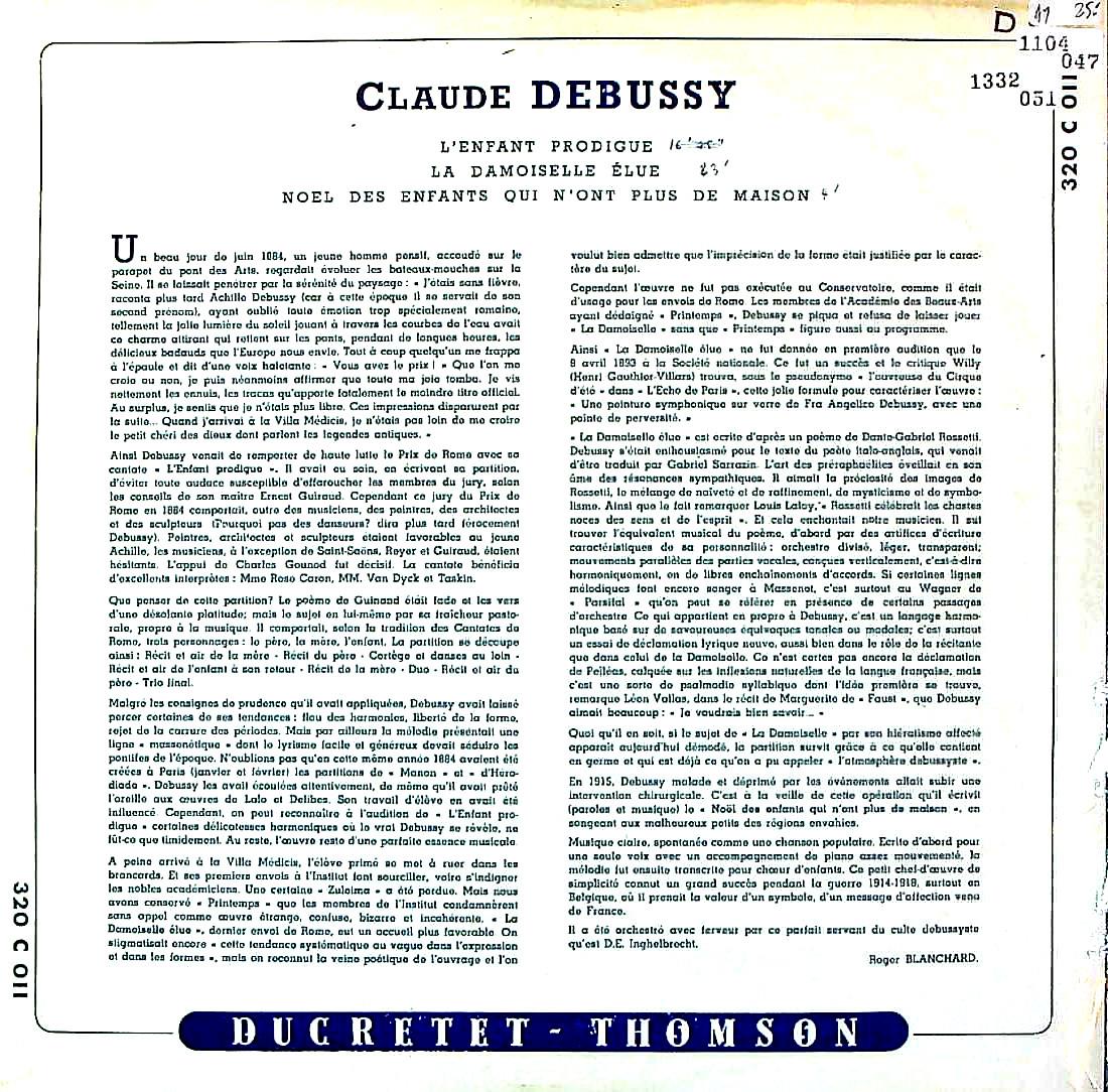 商品コード:1332-051[Ducretet Thomson] D.E.アンゲルブレシュト指揮/ ドビュッシー:放蕩息子, もう家のない子供たちのクリスマス 他