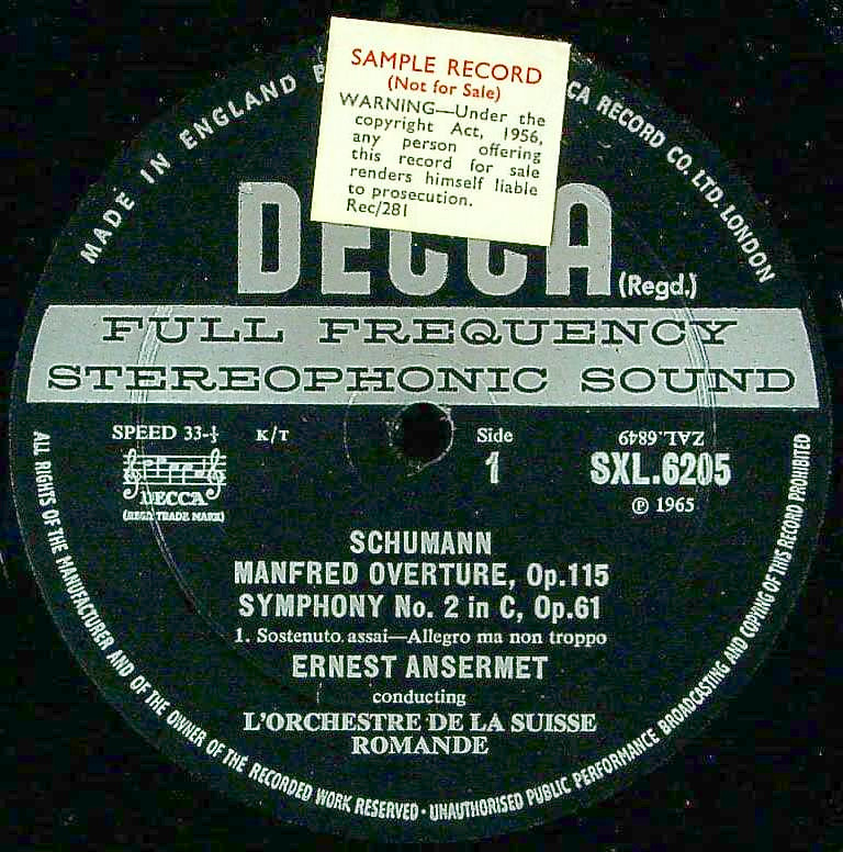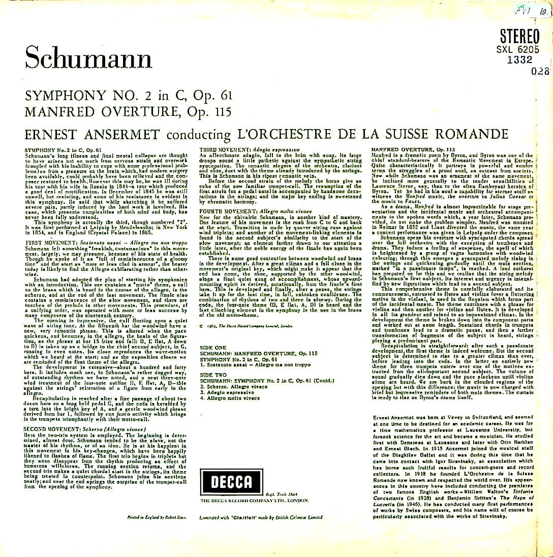 商品コード:1332-028p[DECCA] E.アンセルメ指揮/ シューマン:交響曲2番, マンフレッド序曲