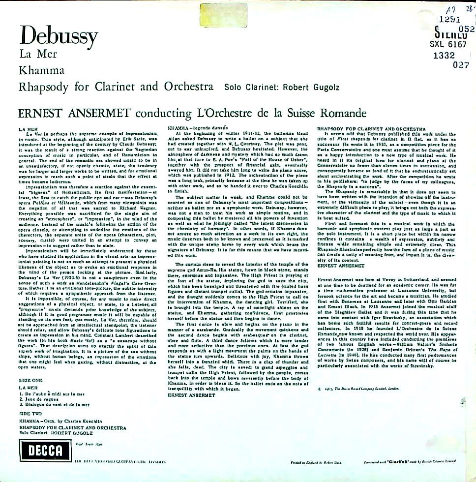 商品コード:1332-027[DECCA] E.アンセルメ指揮 R.グゴルツ(cl) / ドビュッシー:海, Cl狂詩曲, カンマ(ケクランOrch編曲)
