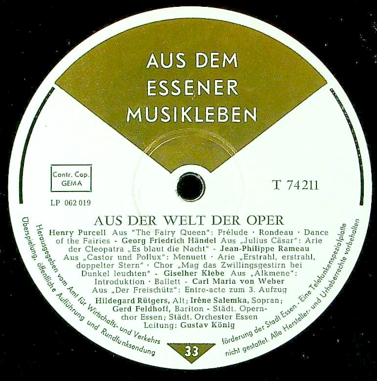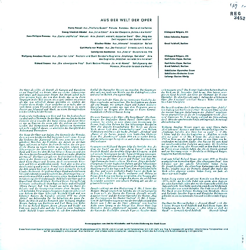 演奏者:G.ケーニッヒ指揮エッセンso./cho.I.サレンカ(s)H.ルートガース(a)G.フェルドホフ(b), 他