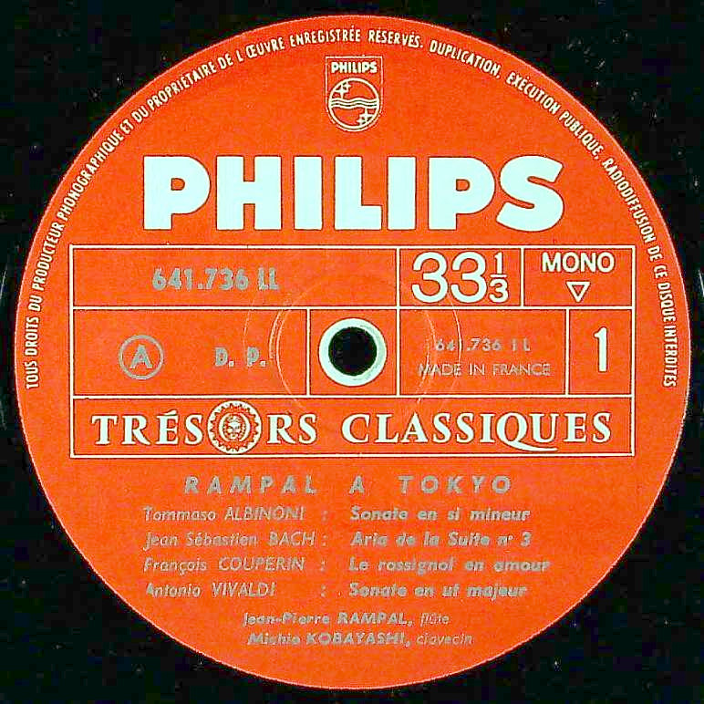 商品コード:1333-043b[PHILIPS] J.P.ランパル(fl)/ 東京のランパル・1964/アルビノーニ, バッハ, クープラン 他