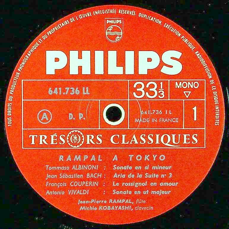 商品コード:1333-043[PHILIPS] J.P.ランパル(fl)/ 東京のランパル・1964/アルビノーニ, バッハ, クープラン 他