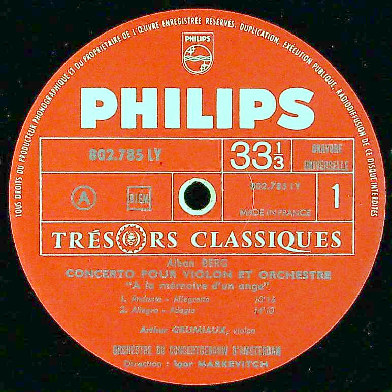 商品コード:1333-038[PHILIPS] A.グリュミオー(vn)/ Vn協奏曲/ベルク, ストラヴィンスキー