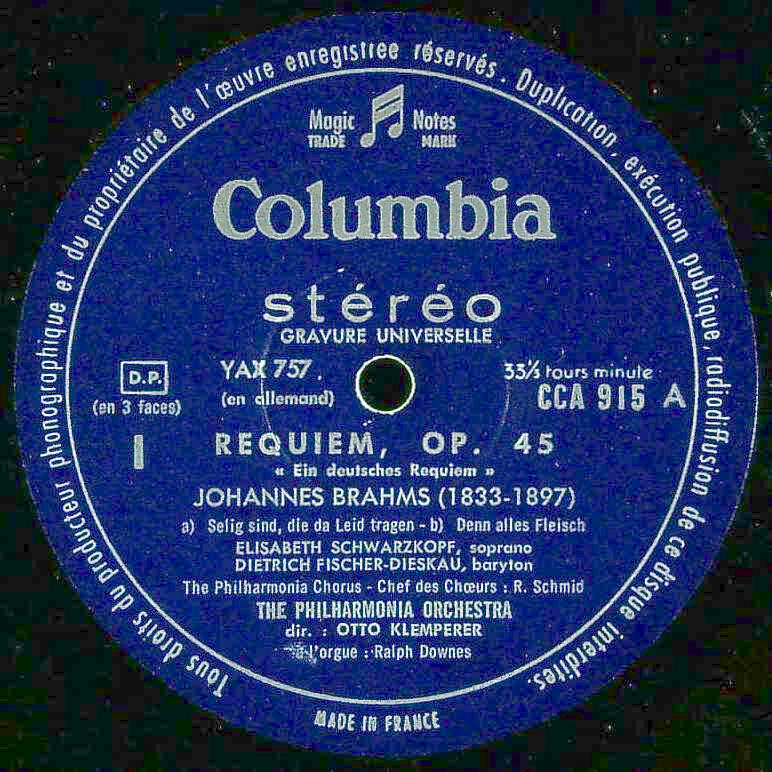 商品コード:1333-030b[COLUMBIA] O.クレンペラー指揮 E.シュヴァルツコップ(s) D.フィッシャー・ディースカウ(br)/ ブラームス:ドイツ・レクイエム