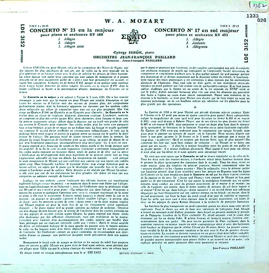 商品コード:1333-020p[ERATO] G.シェベーク(pf)/ モーツァルト:Pf協奏曲23, 17番