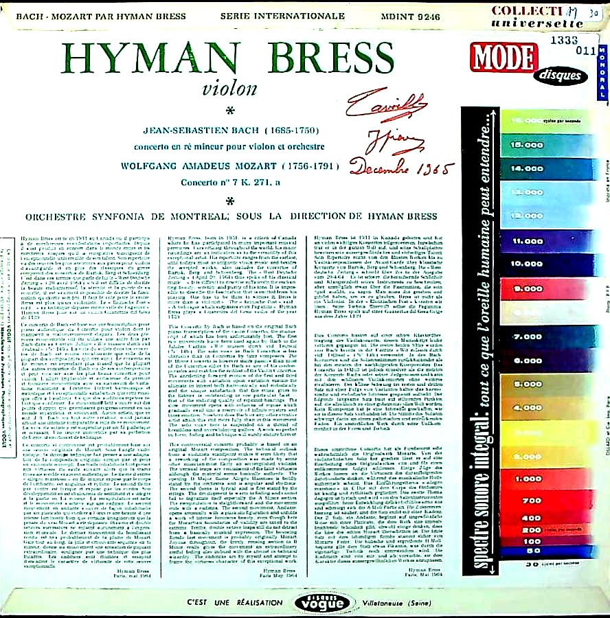 商品コード:1333-011[VOGUE] H.ブレス(vn)指揮/ バッハ:Vn協奏曲1番, モーツァルト:Vn協奏曲7番