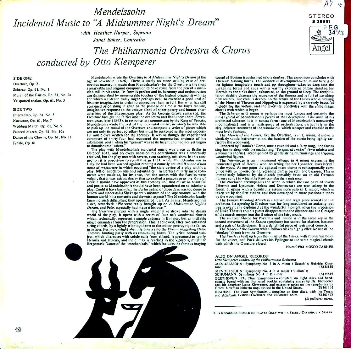 商品コード:REG-3473[米ANGEL] O.クレンペラー指揮/ メンデルスゾーン:夏の夜の夢(ハイライト)