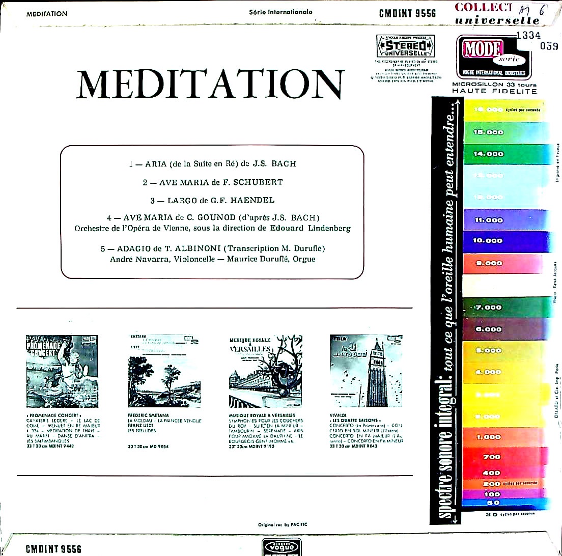 商品コード:1334-059[MODE] E.リンデンベルク指揮/A.ナヴァラ(vc) M.デュリュフレ(org)/ Meditation/バッハ, シューベルト, アルビノーニ 他