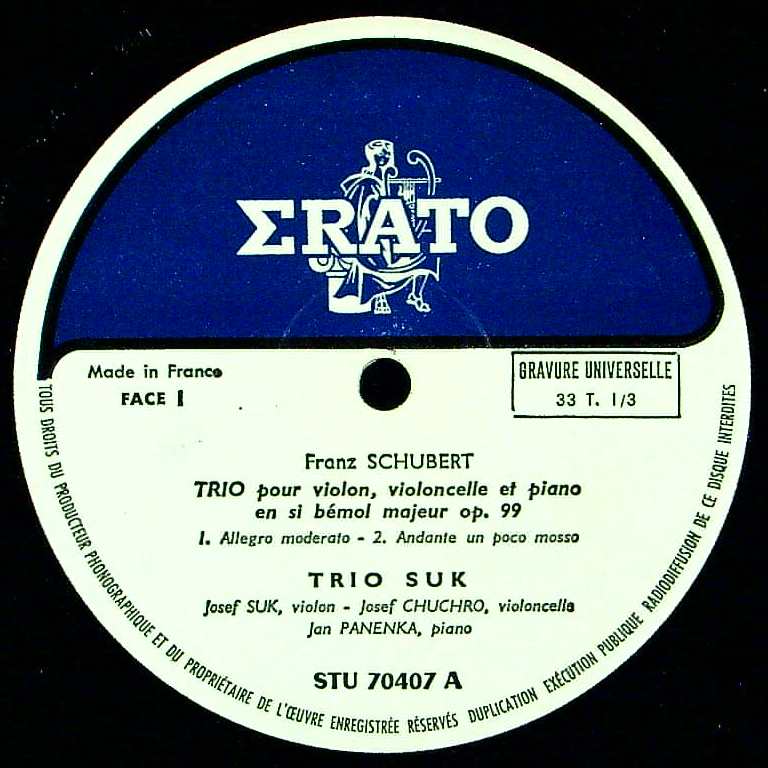 商品コード:1334-043b[ERATO] スーク・トリオ/ シューベルト:Pfトリオ1番, Pf・Vn・Vcのためのノットゥルノ
