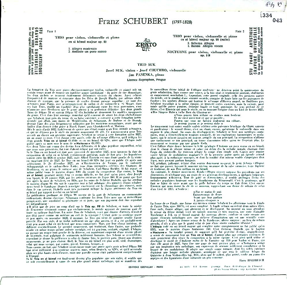 商品コード:1334-043[ERATO] スーク・トリオ/ シューベルト:Pfトリオ1番, Pf・Vn・Vcのためのノットゥルノ