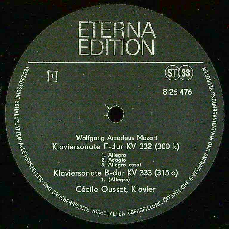 商品コード:1334-020nb[ETERNA] C.ウーセ(pf) / モーツァルト:Pfソナタ12, 13番, きらきら星変奏曲