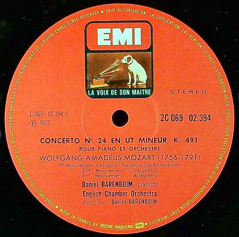商品コード:REG-3494[仏VSM] D.バレンボイム(pf)指揮/ モーツァルト:Pf.協奏曲24, 18番