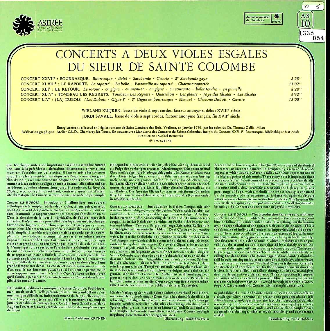 商品コード:1335-054p[ASTRÉE] J.サヴァール, W.クイケン(バス・ヴィオール) / S.コロンブ:2つのヴィオールのためのコンセール集(5曲)