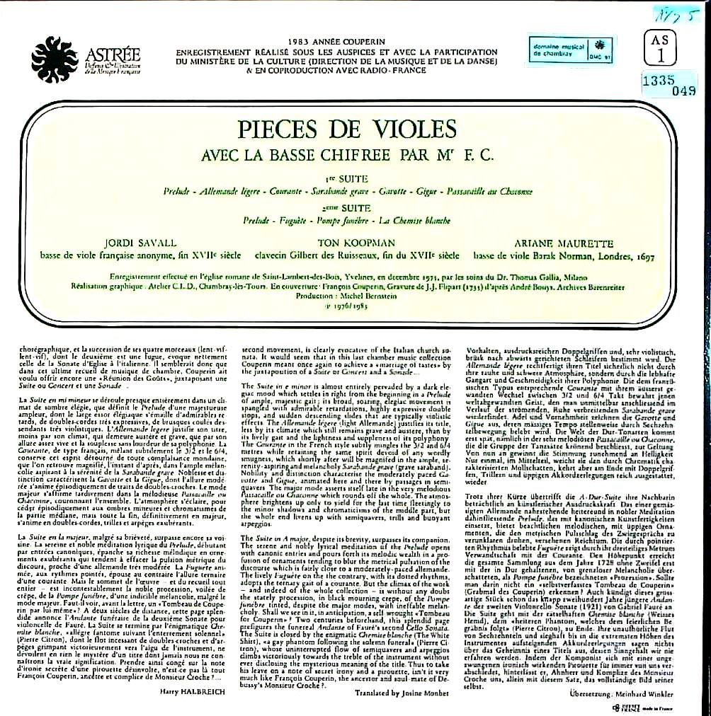 商品コード:1335-049p[ASTRÉE] J.サヴァール(gamb) / F.クープラン:ヴィオール曲集/組曲1, 2番