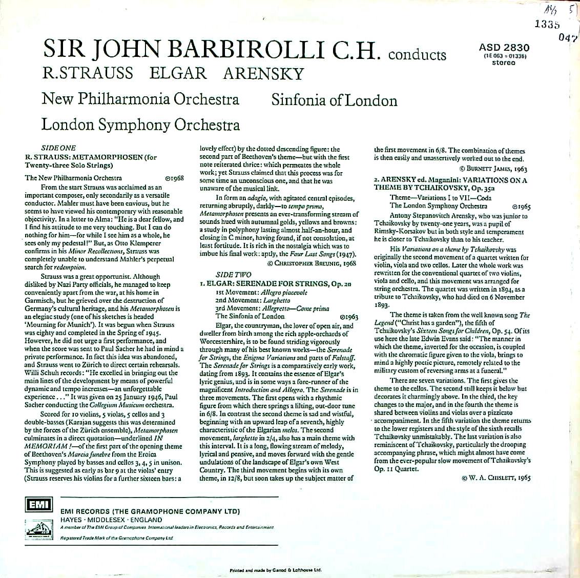 商品コード:1335-047[HMV] J.バルビローリ指揮/ R.シュトラウス:メタモルフォーゼン, エルガー, アレンスキー