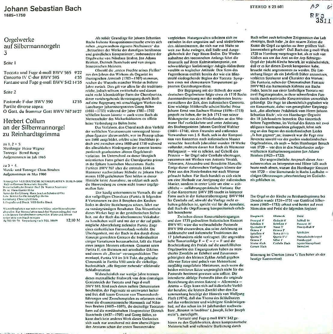 商品コード:REG-3511[東独ETERNA] H.コルム(org) / バッハ:Org作品集Vol.3