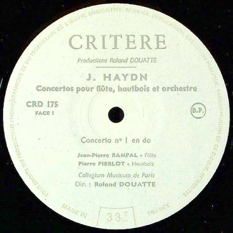 商品コード:1337-062b[CRITĒRE] J.P.ランパル(fl) P.ピエルロ(ob)/ ハイドン:Fl・Ob協奏曲1番, Fl・Ob協奏曲5番