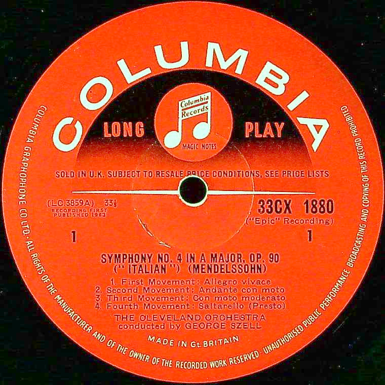 商品コード:1337-044[COLUMBIA] G.セル指揮/ メンデルスゾーン:交響曲4番「イタリア」, フィンガルの洞窟, ウェーバー:オベロン~序曲