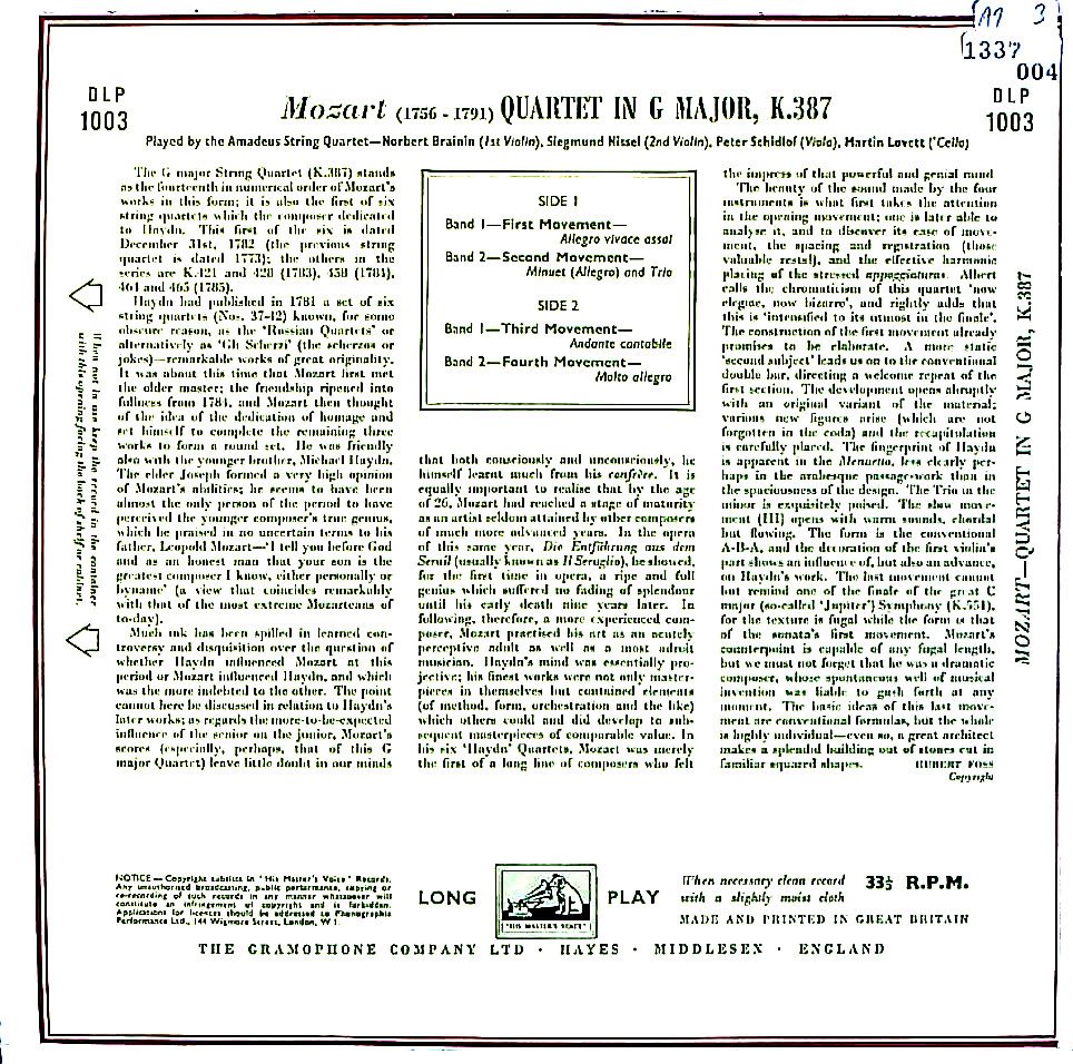 商品コード:1337-004[HMV] アマデウスQt. / モーツァルト:弦楽四重奏曲14番