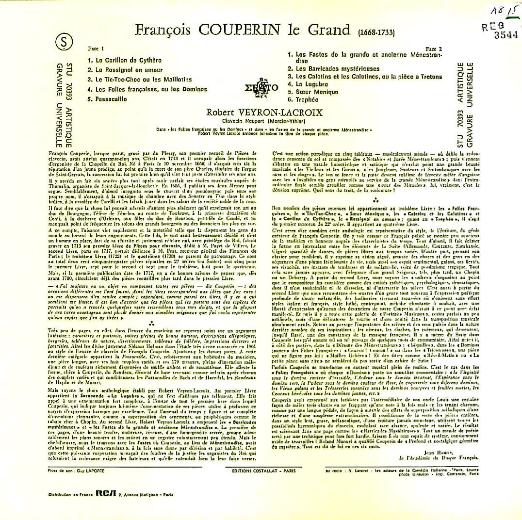 商品コード:REG-3544[仏ERATO] R.ヴェイロン・ラクロワ(cemb) / F.クープラン:Cemb曲選集(11曲)