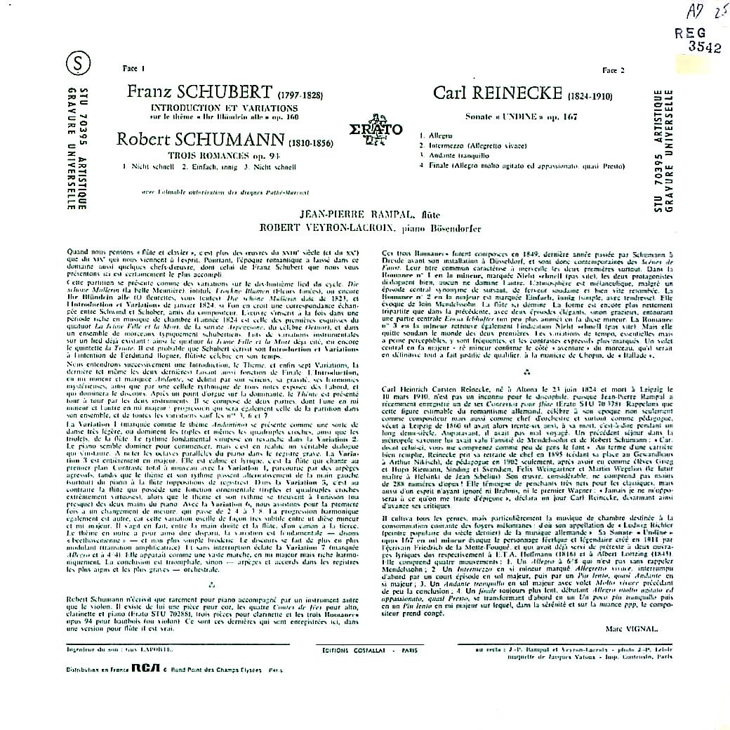 商品コード:REG-3542[仏ERATO] J.P.ランパル(fl)/ シューベルト:しぼめる花の主題による序奏と変奏曲, シューマン, レイネッケ