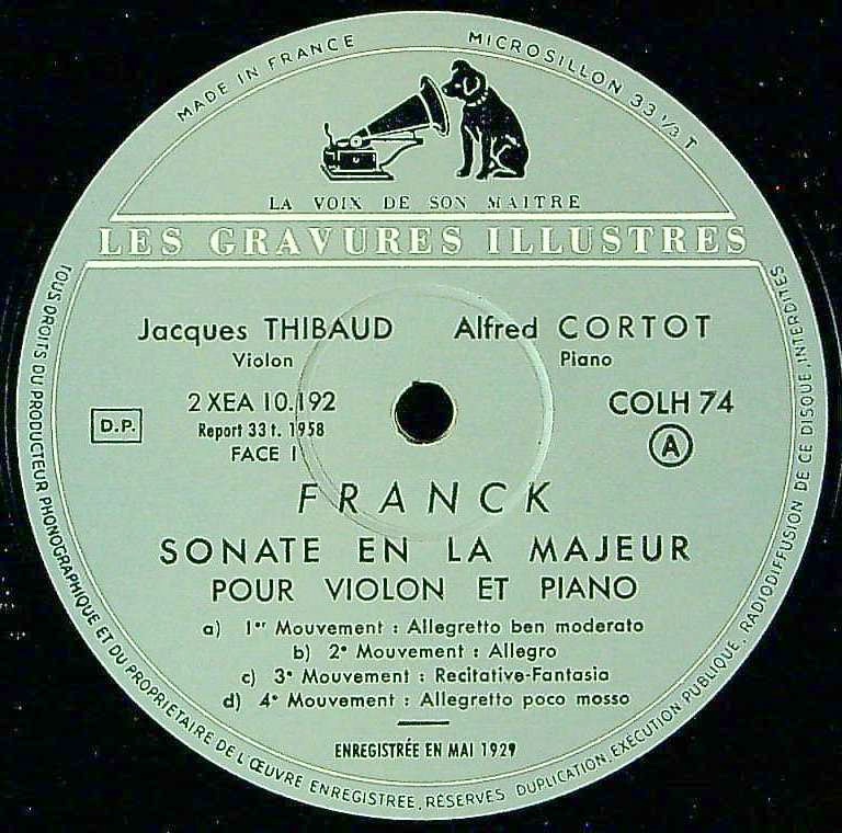 商品コード:1339-046[VSM] J.ティボー(vn)A.コルトー(pf) / Vnソナタ/フランク, フォーレ