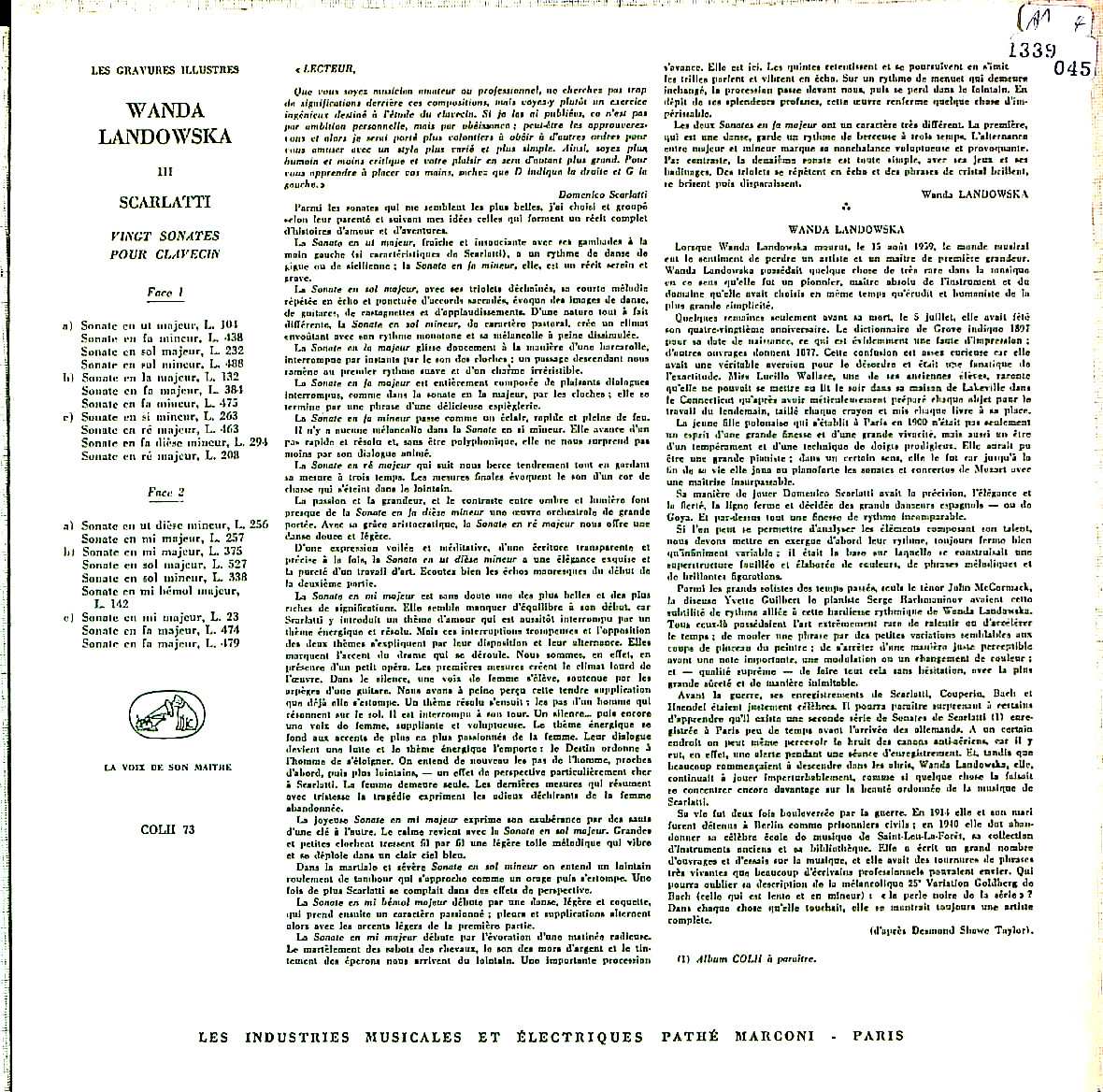 商品コード:1339-045[VSM] W.ランドフスカ(cemb) / D.スカルラッティ:ソナタ集(20曲)