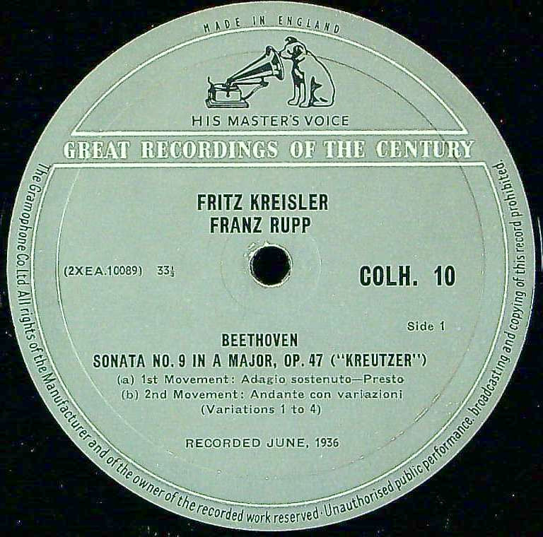 商品コード:1339-036b[HMV] F.クライスラー(vn)/ ベートーヴェン:Vnソナタ8, 9番「クロイツェル」
