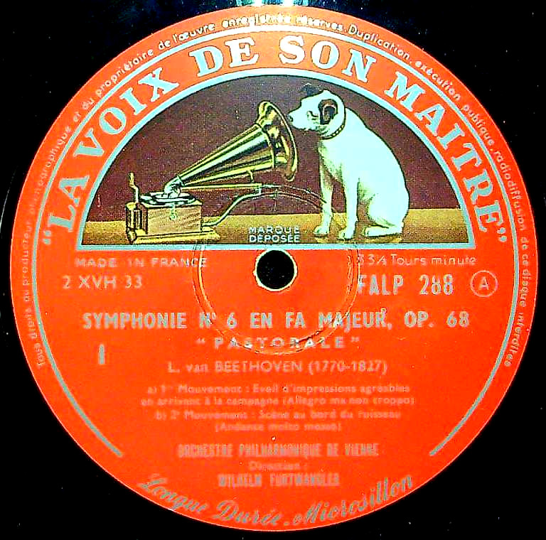 レーベルタイプ:【フランスでのオリジナル・タイプ】---銀大ニッパーツヤ内溝, 9時にMade in France(横銀文字), 3時に33 1/3 Tours minule, 6時に Longue Durée Microsillon, フラット重量, 表記されたレコード番号:FALP 288, Price Code:Ⓐ, Rights Society:記載なし, (P)なし, スタンパー/マトリクス:2XVH 33 21/2XVH 34 21B (ストレート小文字スタンパー・EMI/Pathéタイプ), EMI系グループのオーストリア録音モノラル製造を示す2XVH***で始まりレコード番号を含まないフランス型フランス専用スタンパー使用, 補助マトリクス:ストレートMスタンパー・M6 149173/M6 152529, 再補助マトリクス:なし・パテキュラー(Patéculaire)はなし, ストレート本体とストレートMスタンパーの2種併存のPathéプレス, 1950年代のスタンパーによる1957年頃製造分, Disques Incassable付フラット盤は存在せず, 銀大ニッパーツヤレーベル・フラット盤の最初期分だが1954年頃製造分存在する(ツヤペラジャケ入り), これより古い仏レーベルは存在せず, フランスでの最古レーベルだが最厚プレスではない, フランスで更に古いマトリクス存在する(21/21があると思われる), ステレオ存在せず, RIAAカーヴではない, EMI系グループのオーストリア音源のLa Voix De Son Maître製作Pathéプレス, 工場:Pathé Marconi EMI, Chatou., フランスでのオリジナル・タイプ, original type in Fr.