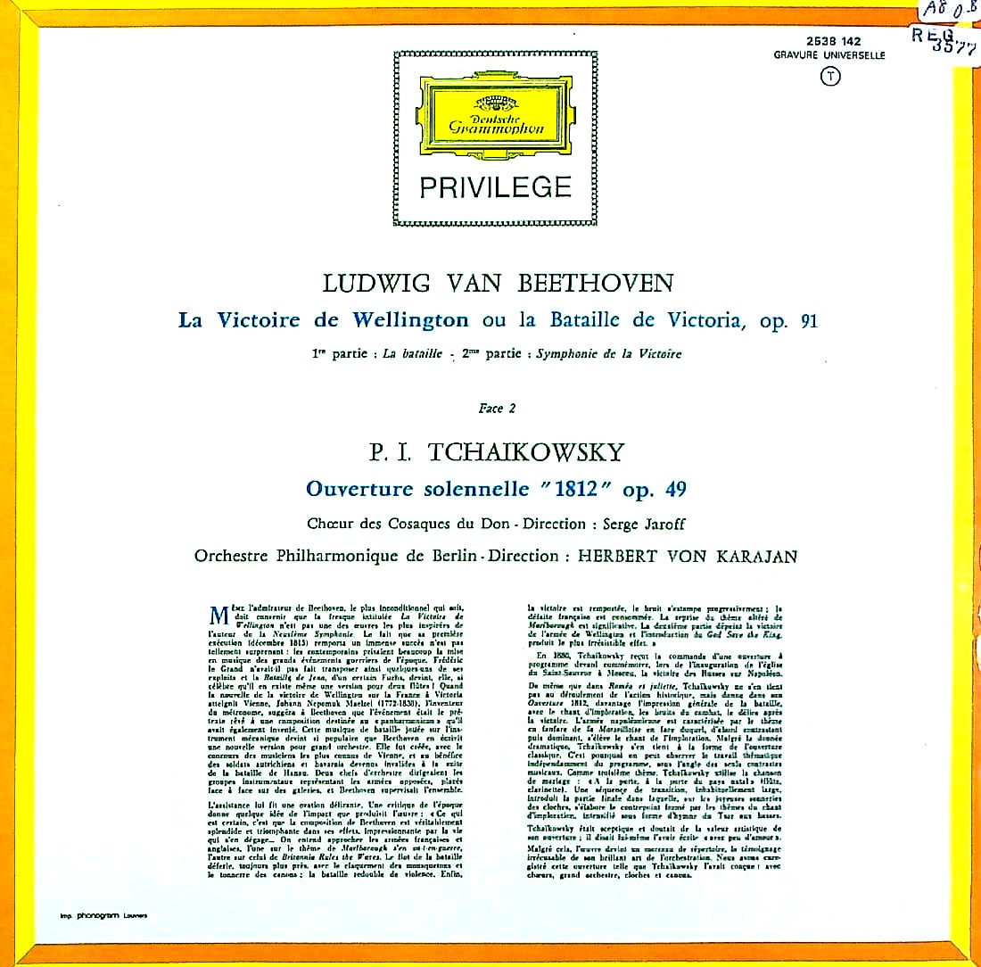 商品コード:REG-3577[仏DGG] H.v.カラヤン指揮/ ベートーヴェン:ウェリントンの勝利, チャイコフスキー:1812年