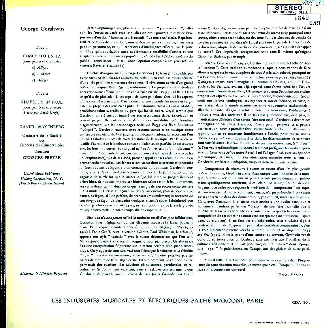 商品コード:1340-059p[Ducretet Thomson] D.ヴァイエンベルフ(pf)/ ガーシュウィン:Pf協奏曲, ラプソディー・イン・ブルー(グローフェ編)