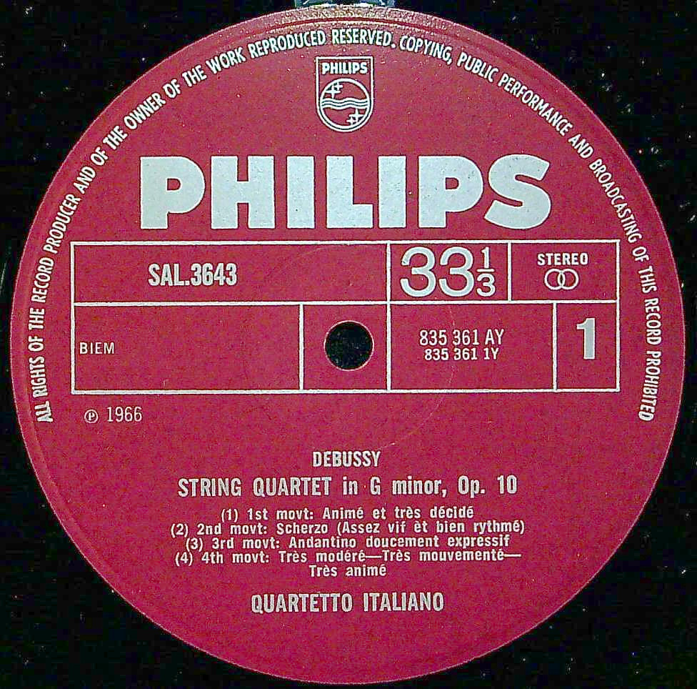 商品コード:1340-054b[PHILIPS] イタリアQt. / 弦楽四重奏曲/ドビュッシー, ラヴェル