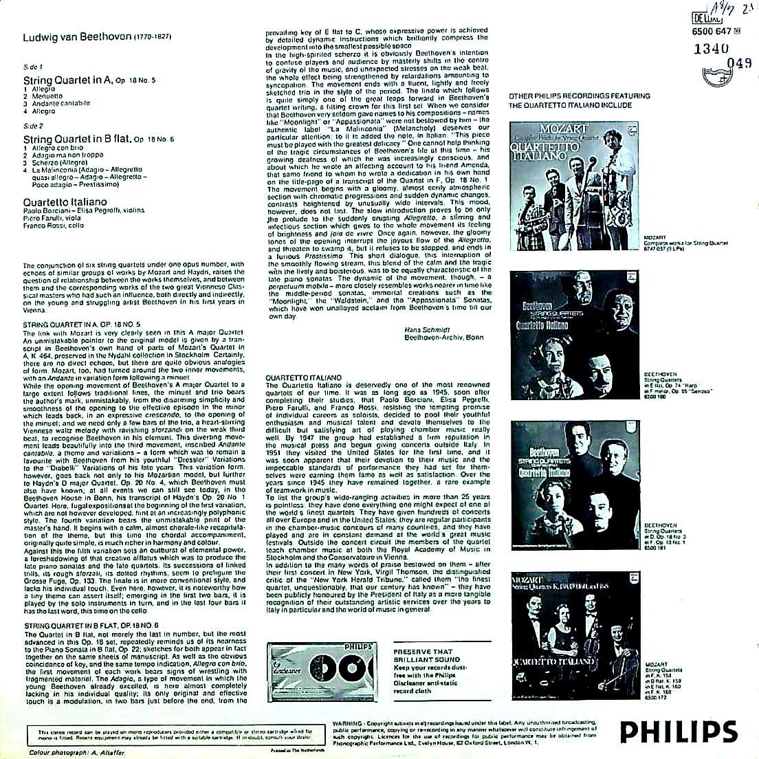 商品コード:1340-049[PHILIPS] イタリアQt. / ベートーヴェン:弦楽四重奏曲5, 6番