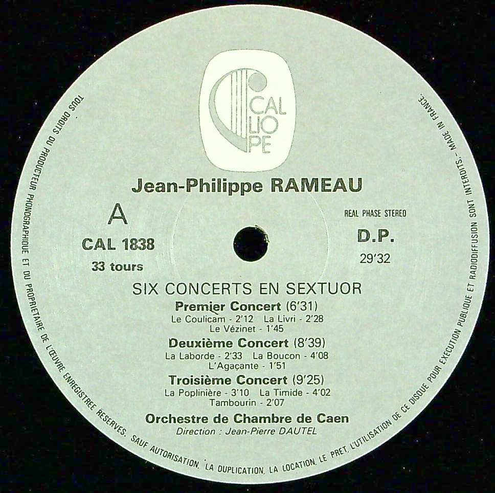 商品コード:1341-054b[CALLIOPE] J.P.ドーテル指揮/ ラモー:六重奏用に編曲された6つのコンセール