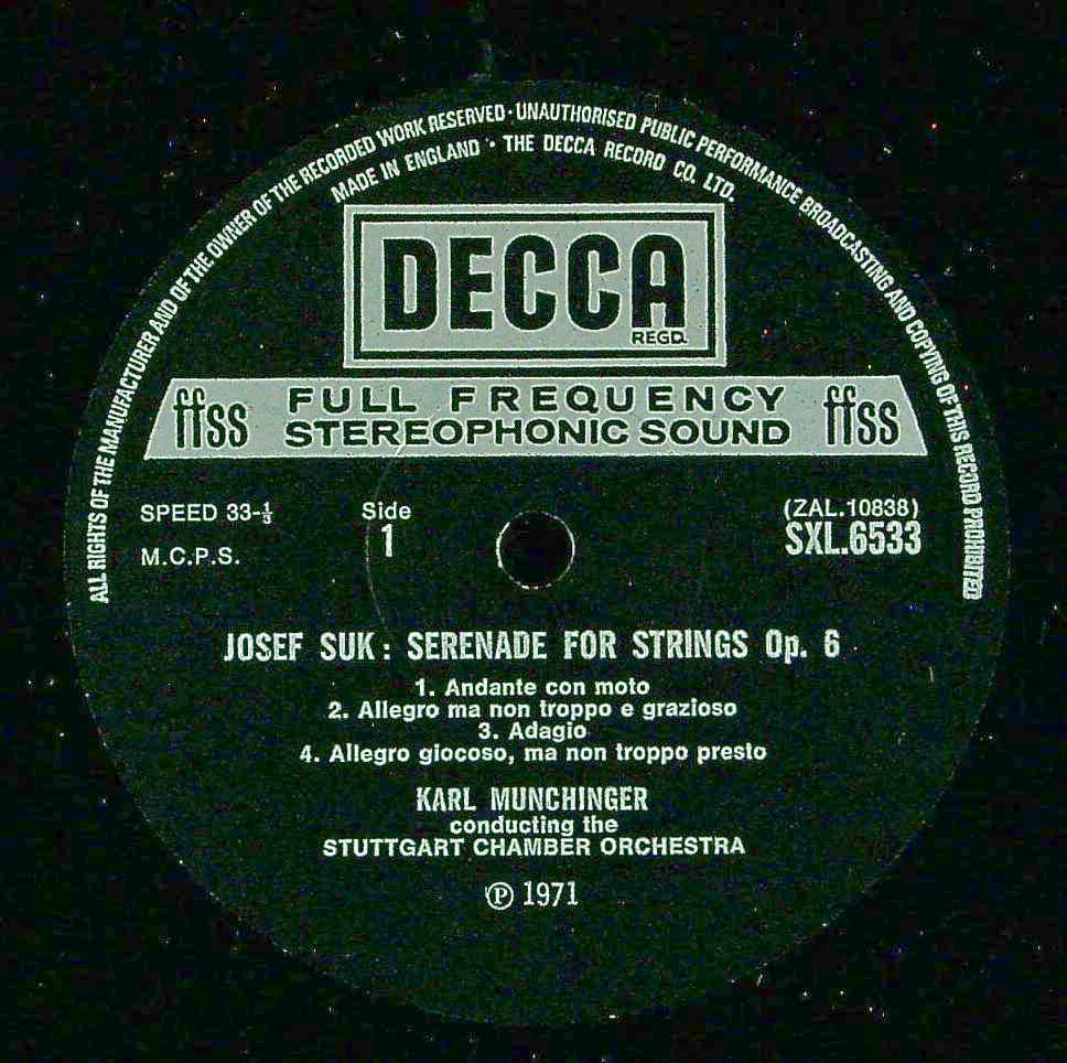 商品コード:1341-044[DECCA] K.ミュンヒンガー指揮/ スーク:弦楽セレナーデ, ヴォルフ, R.シュトラウス