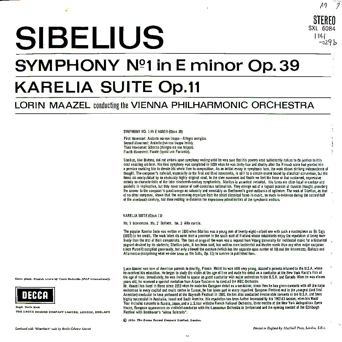 商品コード:1341-029b[DECCA] L.マゼール指揮/ シベリウス:交響曲1番, カレリア